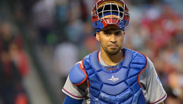 El receptor de los Rangers de Texas se lastimó mientras consumía su segundo turno en el partido del sábado contra los Ángeles