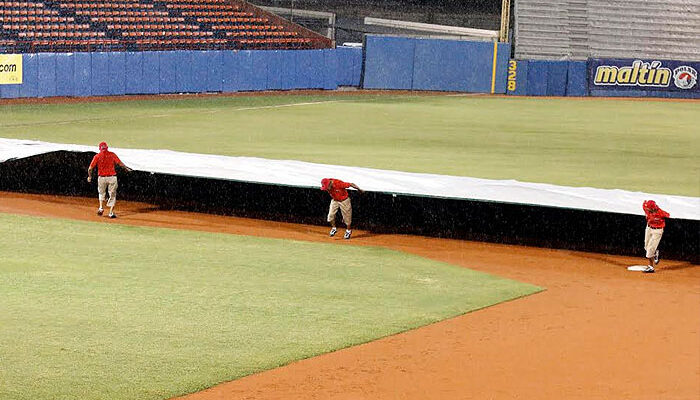 El choque entre Caribes de Anzoátegui y Cardenales de Lara fue suspendido a las 7:50 de la noche, luego que un fuerte aguacero dañara el terreno del Estadio Antonio Herrera Gutiérrez a la altura del segundo inning