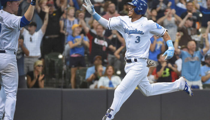 El campocorto conectó el vigésimo séptimo jonrón dentro del parque en la historia de los Cerveceros de Milwaukee