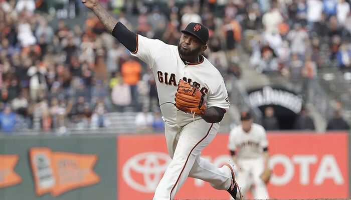 El infielder tiró un inning en blanco en la paliza 15-6 que le propinaron los Dodgers a los Gigantes el sábado por la tarde
