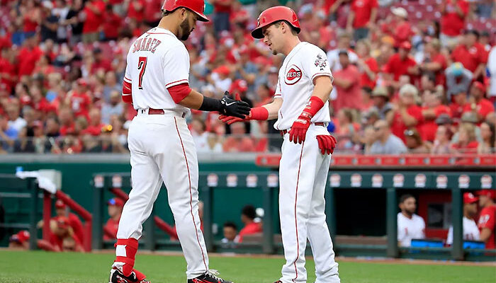 El tercera base completó el viernes su quinto partido con al menos un jonrón, lo que igualó la marca para los Rojos de Cincinnati y los venezolanos en las Grandes Ligas
