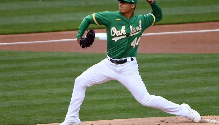 El zurdo completó cinco innings en blanco en su esperado primer inicio con los Atléticos de Oakland