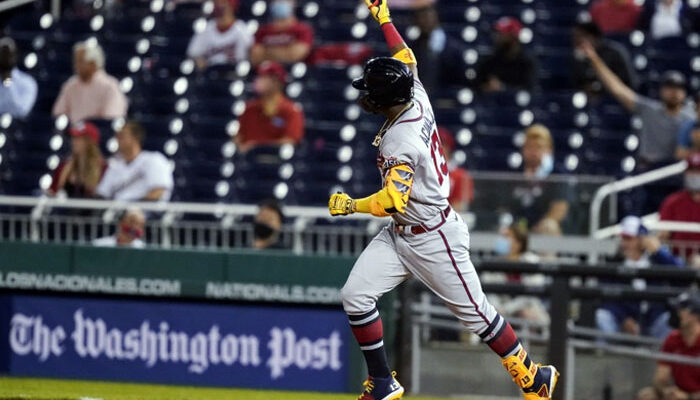 El estelar jardinero de los Bravos de Atlanta largó el décimo jonrón de la temporada y lidera las mayores en solitario