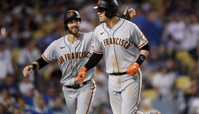 El utility de los Gigantes de San Francisco sacudió el jonrón 100 de su carrera, en un triunfo clave contra los Dodgers de Los Ángeles