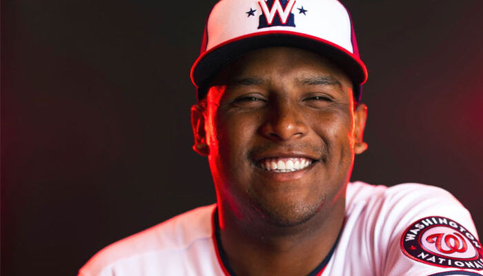 El receptor había sido promovido a las Mayores el viernes y el domingo fue usado por primera vez por el mánager Dave Martínez. Es el prospecto 26 de los Nacionales