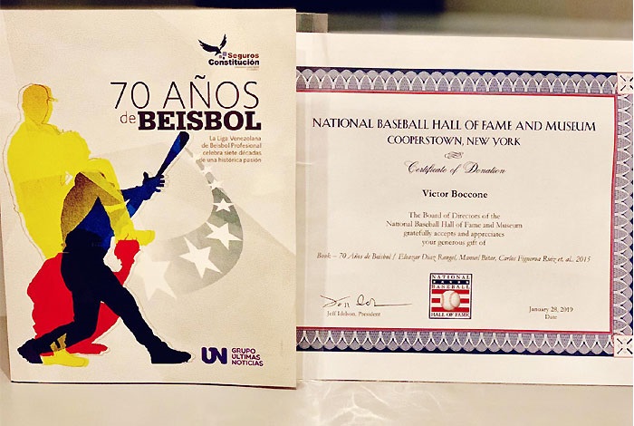 Un par de meses se tomó la directiva del Baseball Hall of Fame and Museum, de la mano de su presidente, Jeff Idelson, para aceptar la inclusión de este ejemplar de 200 páginas y clasificado en nueve capítulos, en los que recoge desde los inicios del beisbol en Venezuela; la creación de la LVBP; sus ídolos; estadísticas y mucho más.