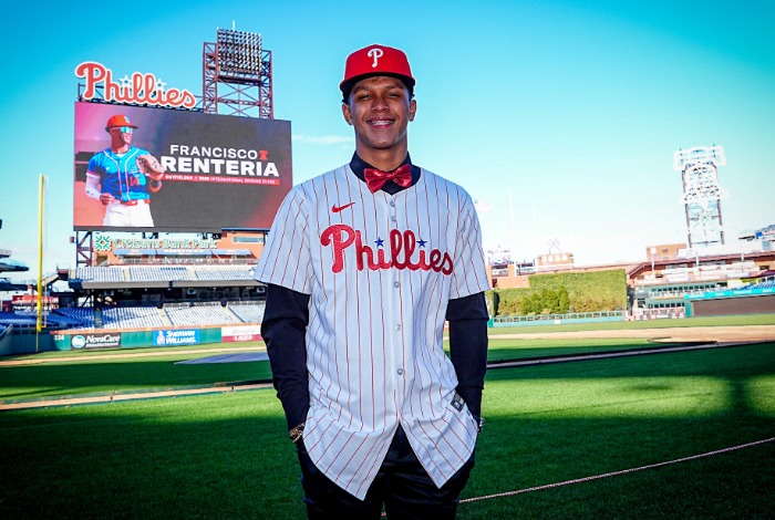 Rentería, entretanto, es un jardinero considerado como el tercer mejor prospecto del período. Estampó su rúbrica por $ 4,0 millones con los Filis de Filadelfia, igualando el récord de franquicia fijado en 2015, por el guardabosque dominicano Jhaylin Ortiz.