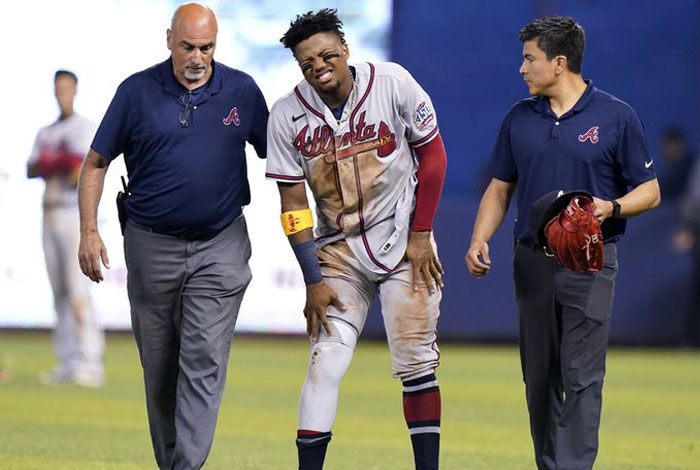 Acuña Jr. sufrió la ruptura del ligamento cruzado anterior en el cierre del quinto inning, en un encuentro entre los Bravos y los Marlins de Miami, cuando intentó tomar un largo batazo de Jazz Chisholm Jr., fuera de su alcance, y en el salto final para tratar de fildearlo cayó mal y tuvo que ser atendido en la zona de seguridad del loanDepot Park.
